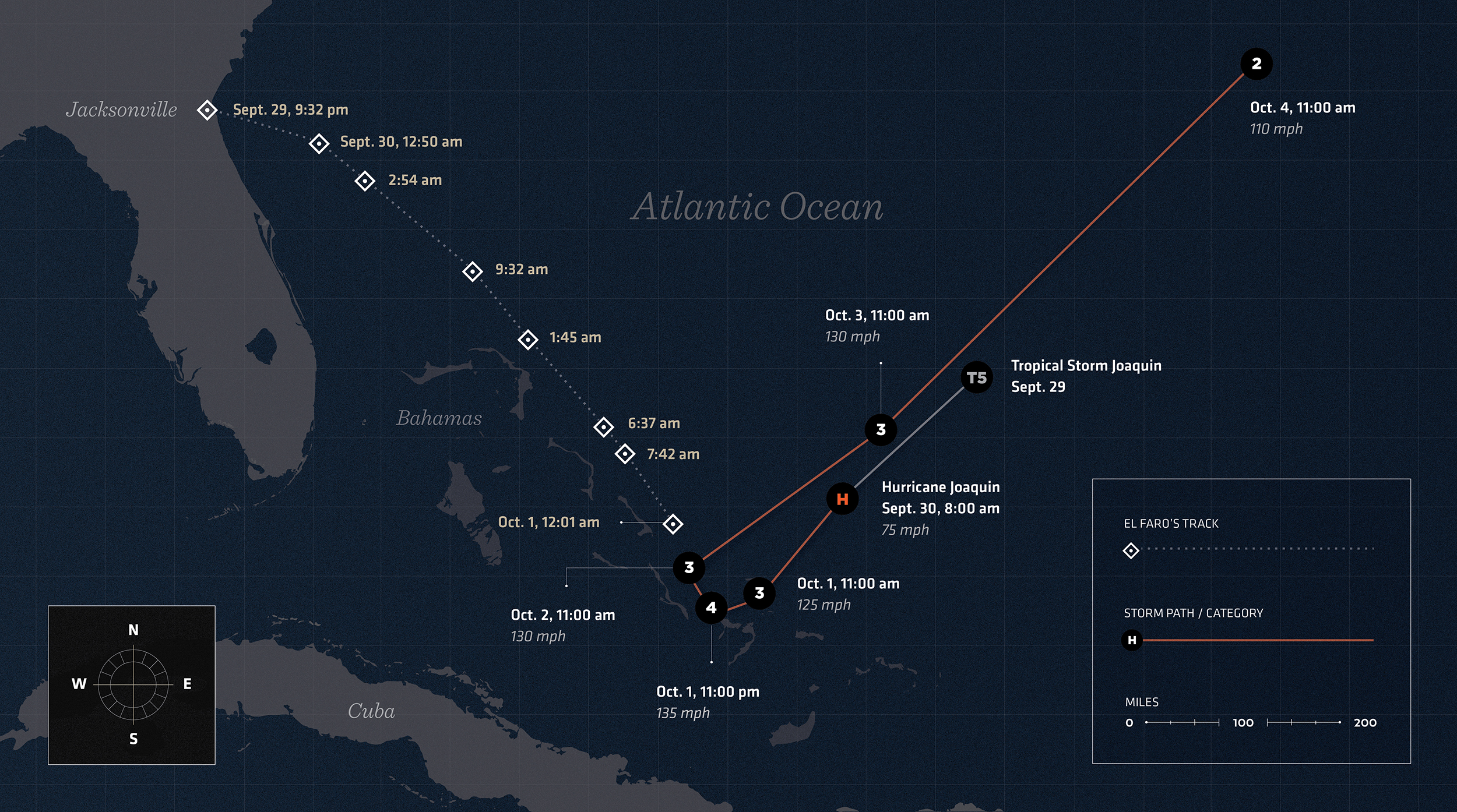 Shortly after the El Faro cargo ship made national news after going lost at sea during Hurricane Joaquin, the Weather Channel published a feature reporting their research on the tragedy. I was asked by their journalists to illustrate a map that tracked the locations and timelines of both the El Faro and Hurricane Joaquin to add visual context to their digital feature. Read David DeCamp's story here.