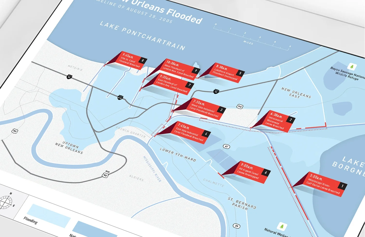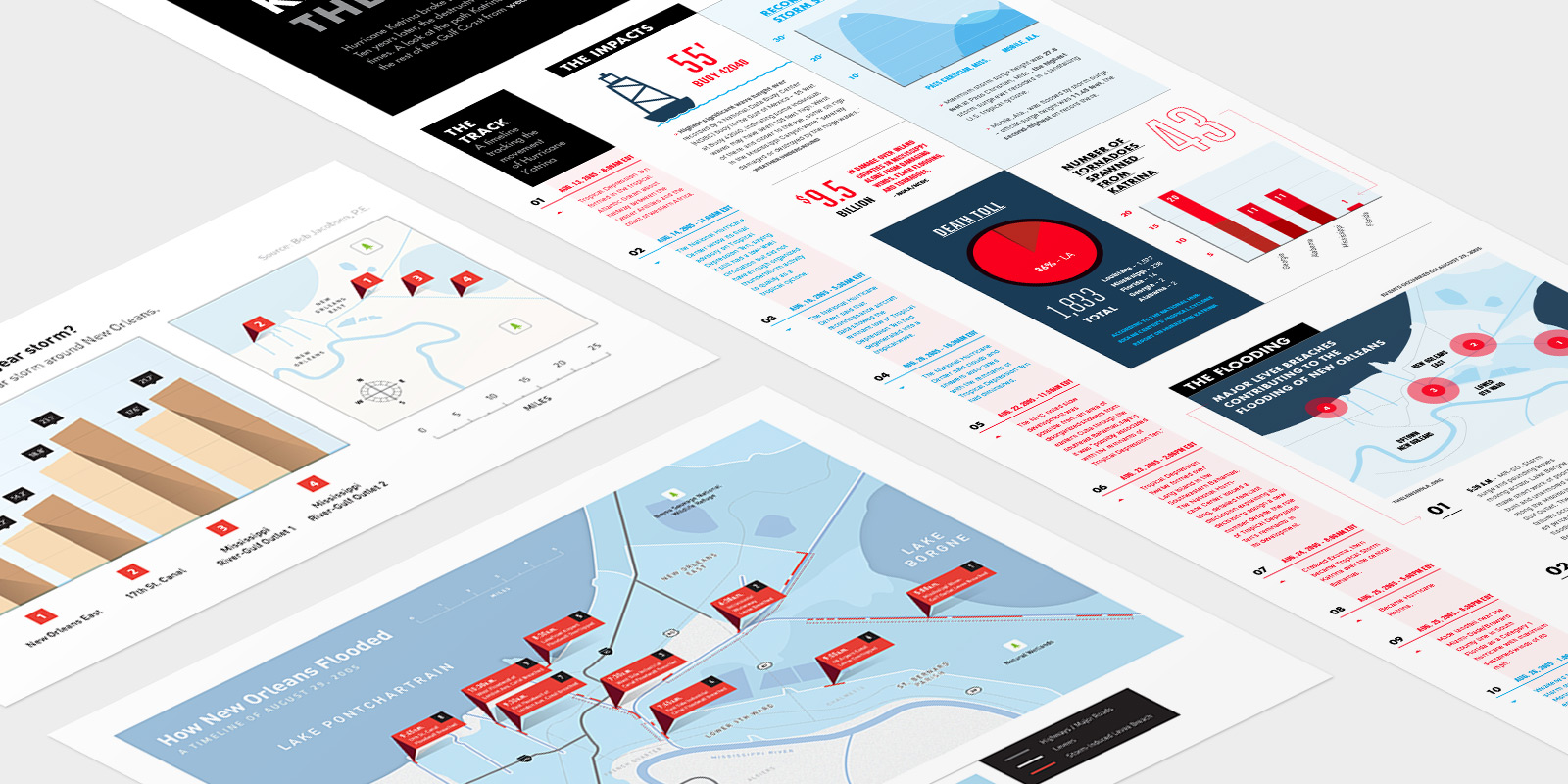 To mark the 10-year anniversary of Hurricane Katrina in the summer of 2015, The Weather Channel published a extensive amount of digital content recapping the events surrounding the hurricane and its effects on America. I was asked to create several data-focused maps and graphics to accompany the web feature and provide context and visual interest to the reporters' research. Read Bob Marshall's story here.